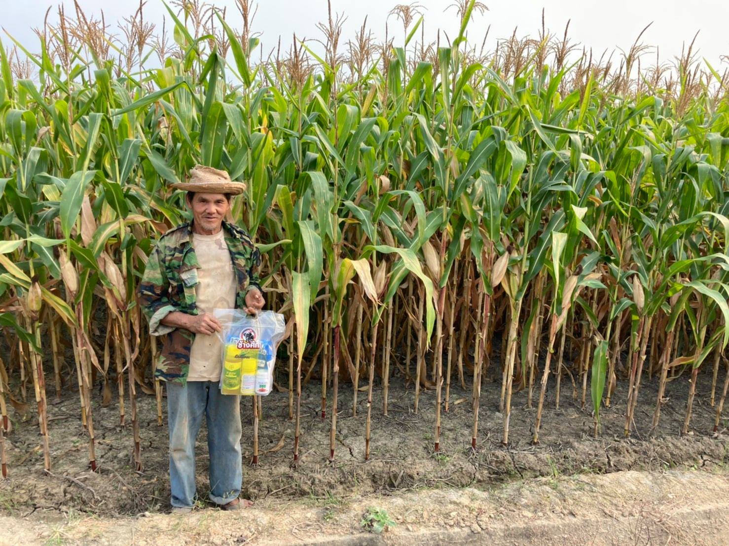 - ผสมน้ำ 60–80 ลิตร แล้วพ่นในแปลงข้าวโพด