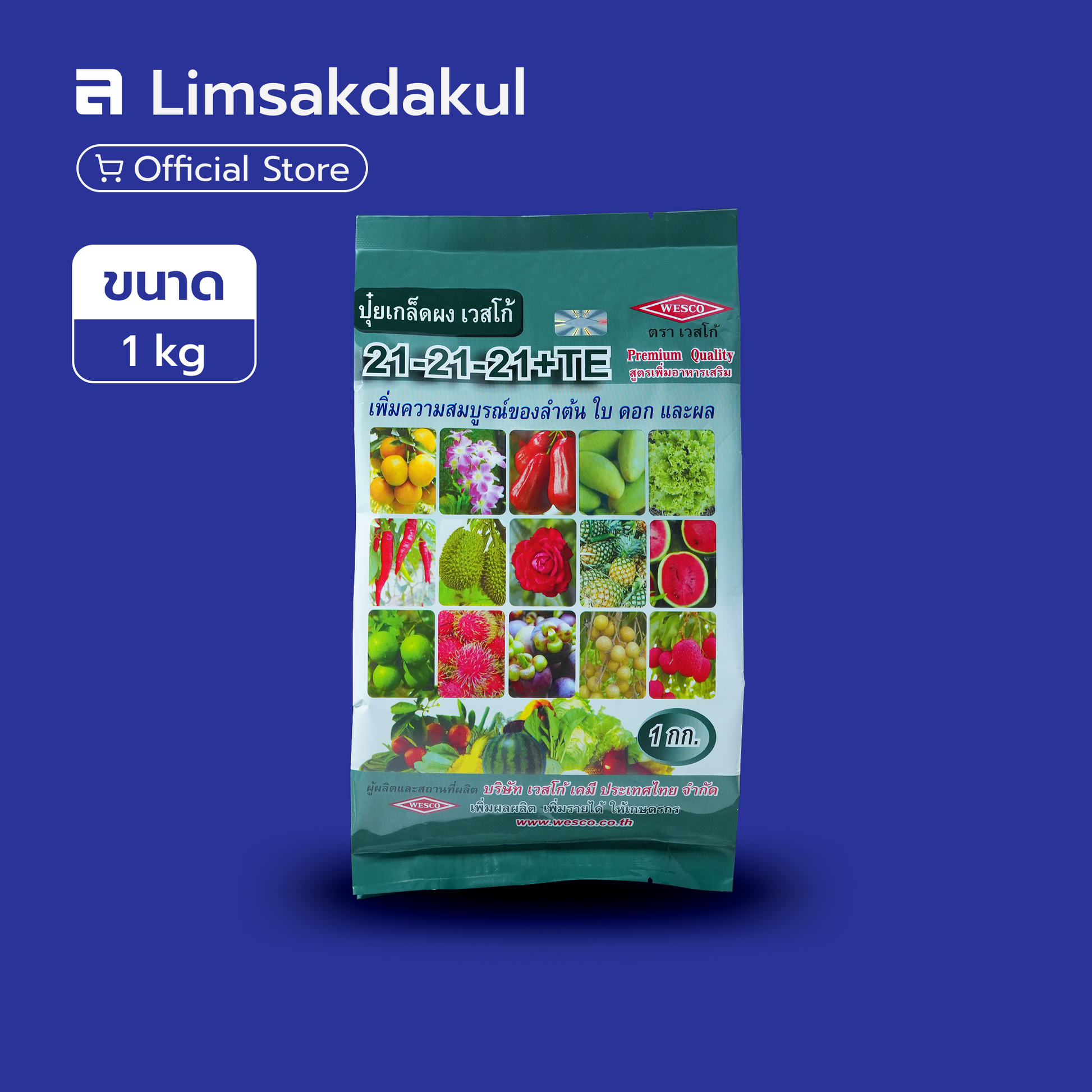 ปุ๋ยเกล็ดละลายน้ำสูตร 21-21-21 จากเวสโก้ เหมาะสำหรับพืชทุกชนิดในทุกช่วงอายุ ช่วยเร่งการเจริญเติบโต เพิ่มจำนวนใบ ราก ดอก และผลผลิต เหมาะสำหรับการบำรุงพืชโดยรวม หรือใช้หลังฟื้นฟูต้นจากสภาพอากาศหรือแมลงทำลาย
