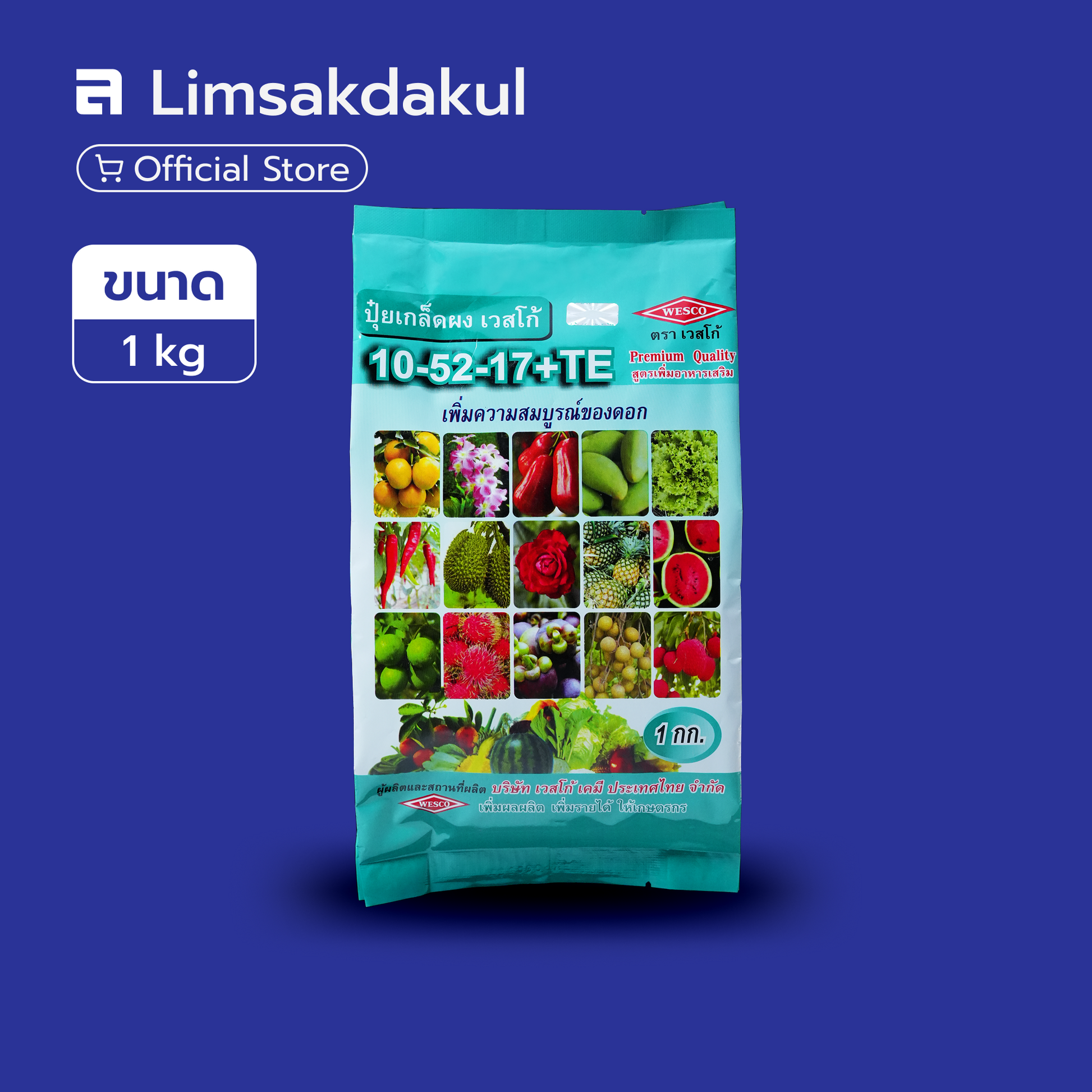 Wesco 10-52-17 + TE เป็นปุ๋ยเกล็ดละลายน้ำสูตรฟอสฟอรัสสูง ใช้สำหรับกระตุ้นการแตกราก ช่วยเร่งการออกดอก เพิ่มเปอร์เซ็นต์การติดผล เหมาะสำหรับใช้ในระยะเริ่มต้นของการออกดอกและช่วงต้องการพลังงานในการสังเคราะห์แสง พร้อมเสริมธาตุรองในรูปคีเลตที่พืชดูดซึมได้ดี