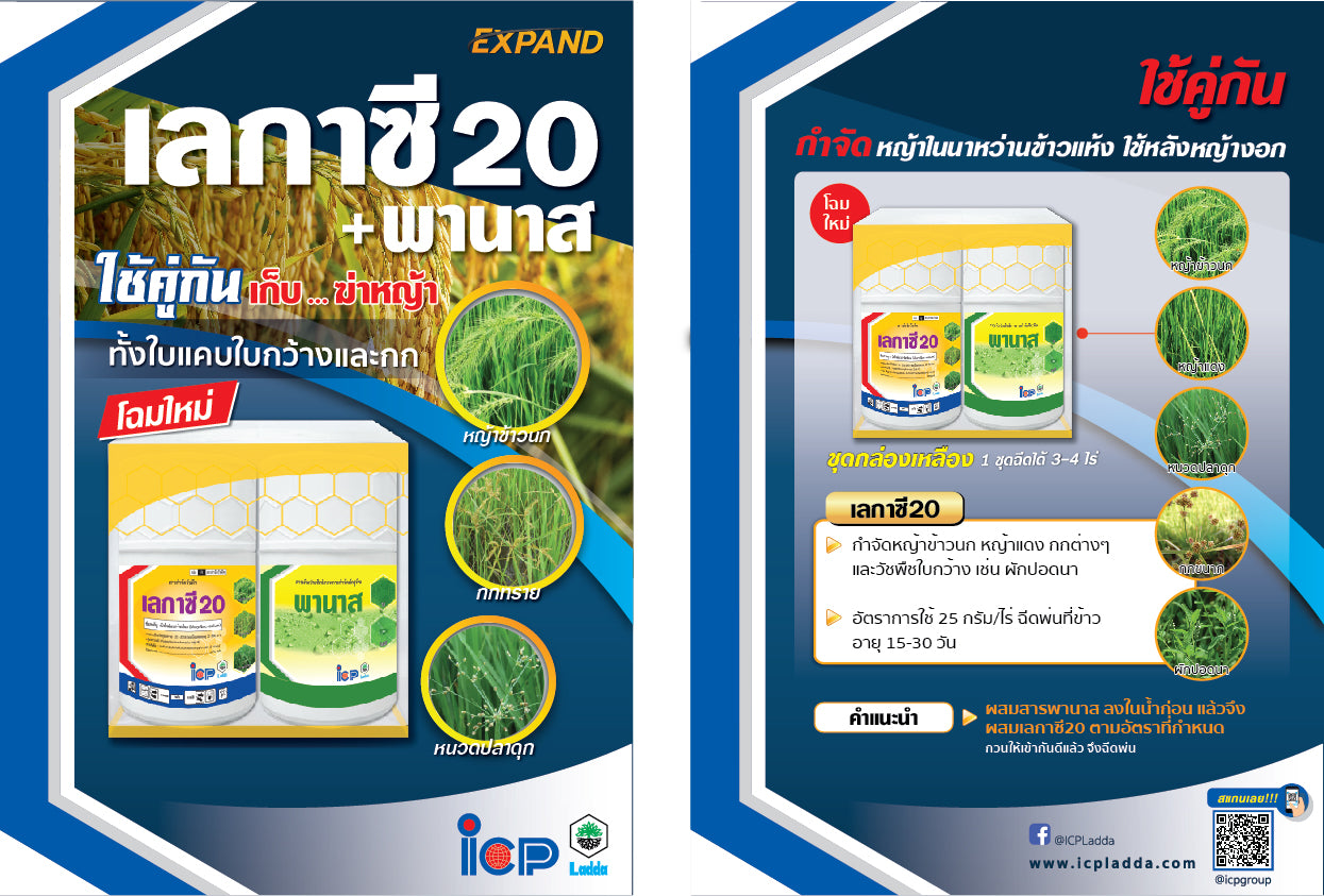เลกซี่ 20 สารกำจัดวัชพืชชนิดเลือกทำลาย กลุ่ม Pyrimidinyloxybenzoic acid มีสารสำคัญ ไบซไพริแบค-โซเดียม (Bispyribac-sodium) 20% WP ใช้กำจัดวัชพืชในนาข้าวอย่างมีประสิทธิภาพ