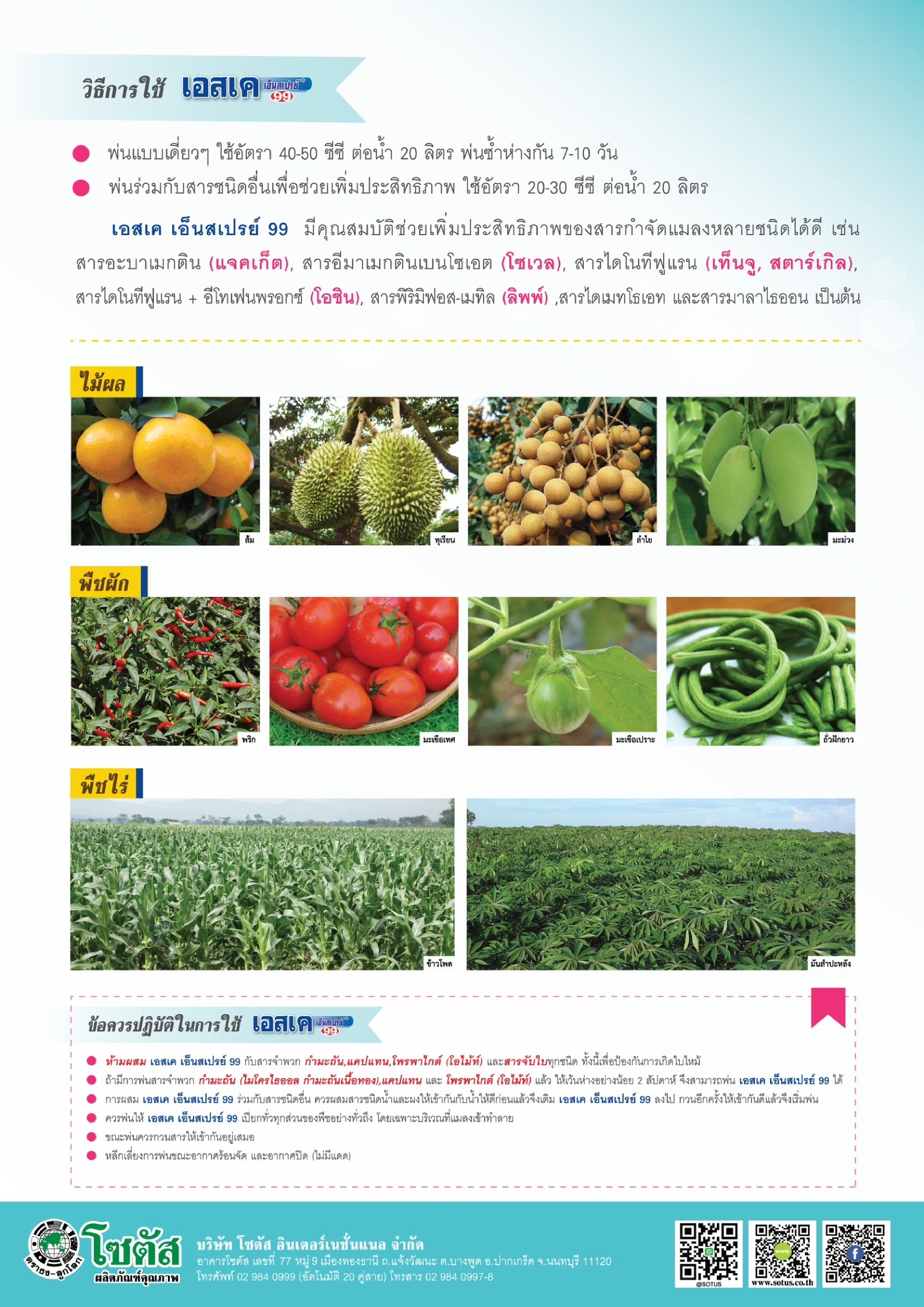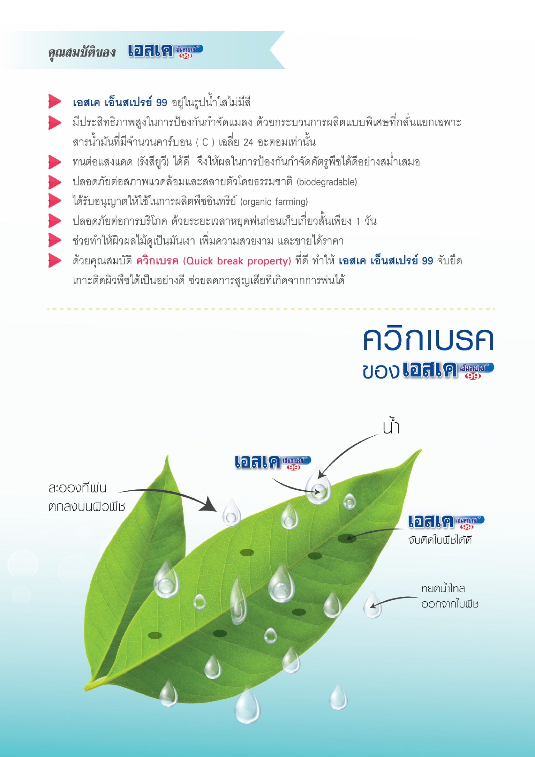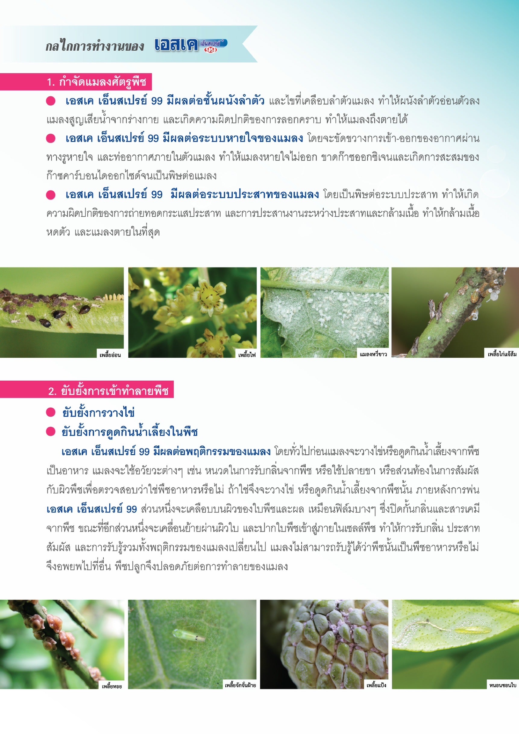 - เคลือบผิวใบ ทำให้แมลงหายใจไม่ออก