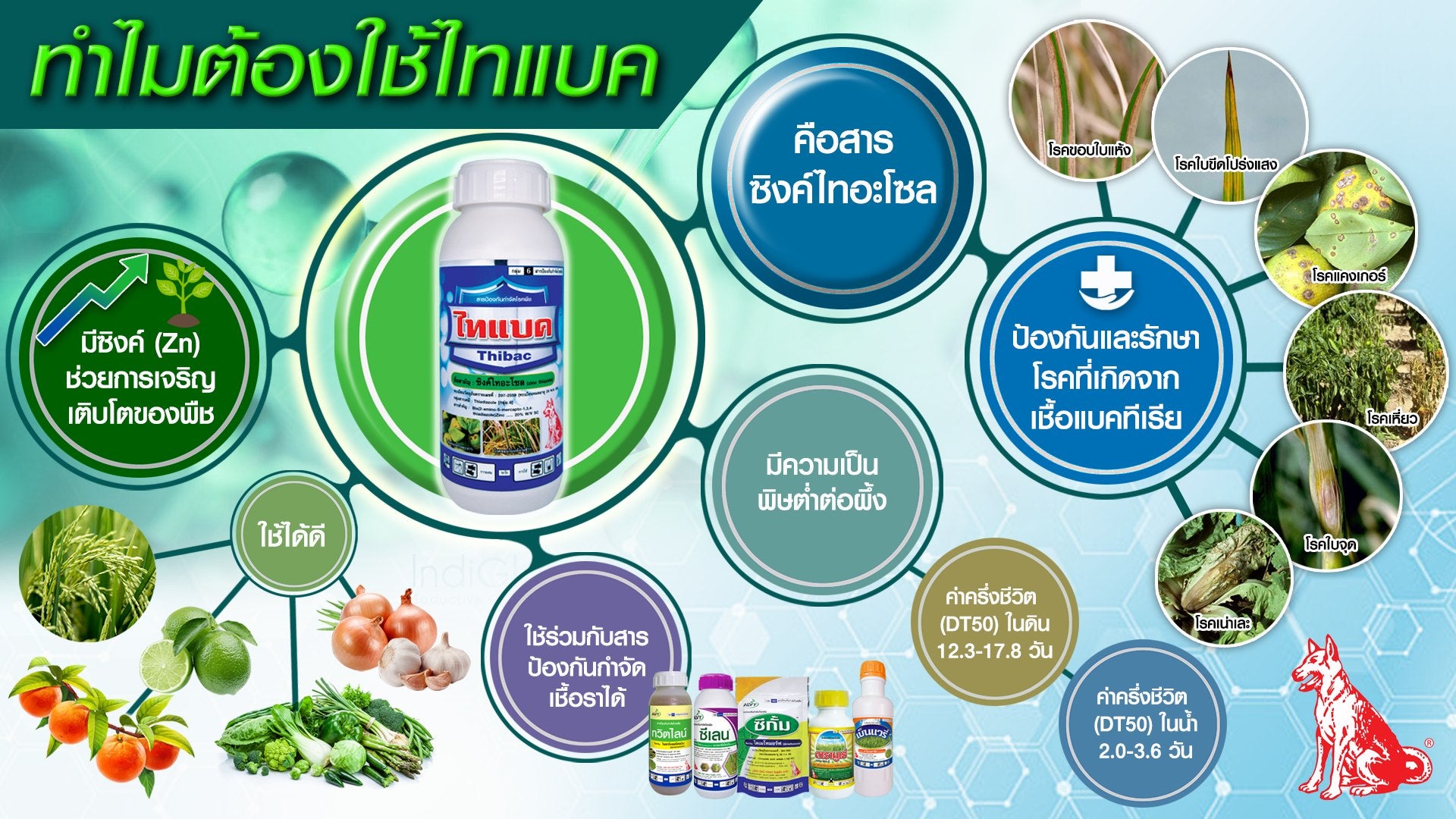 - ป้องกันและกำจัดโรคพืชที่เกิดจากเชื้อแบคทีเรีย เช่น โรคขอบใบแห้ง โรคใบขีดโปร่งแสง โรคใบแถบแดงในข้าว