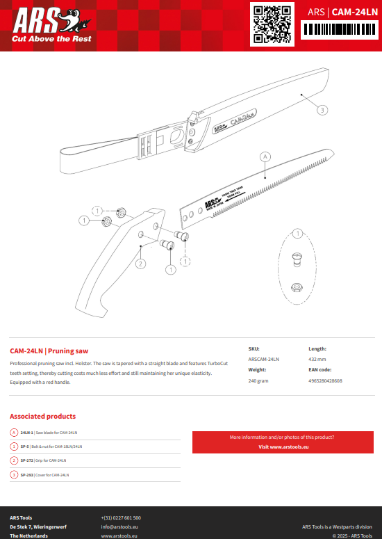 ARS CAM-24LN เลื่อยตัดกิ่งใบตรง 240 มม.