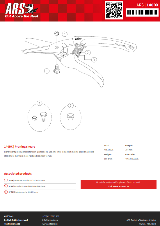 ARS รุ่น 310 เป็นกรรไกรตัดกิ่งไม้ปากงอ ลิขสิทธิ์แท้จากประเทศญี่ปุ่น ออกแบบเพื่อการตัดที่แม่นยำ ใช้งานง่าย ไม่ทำลายผลผลิต เหมาะอย่างยิ่งสำหรับไร่ผลไม้ ไร่องุ่น สวนผัก หรือการตัดแต่งต้นไม้ขนาดเล็กทั่วไป